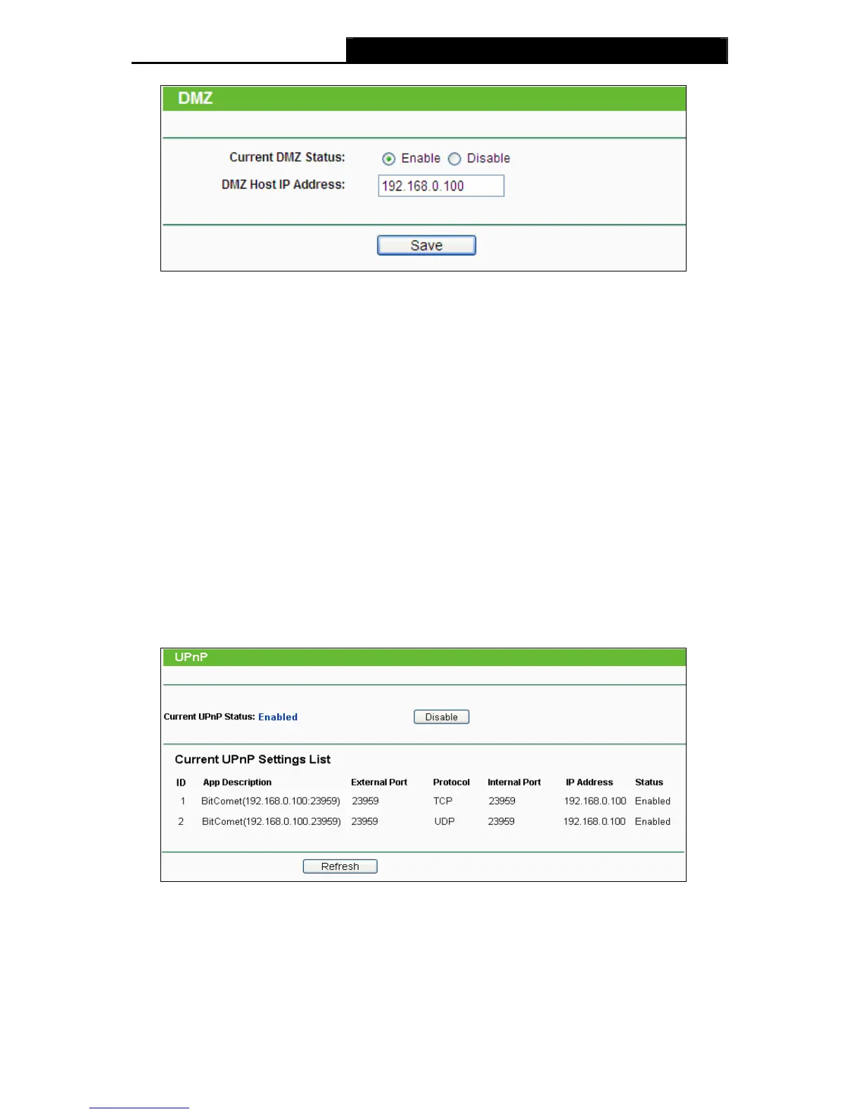 ¾ Current UPnP Status - UPnP can be enabled or disabled by clicking the Enable or