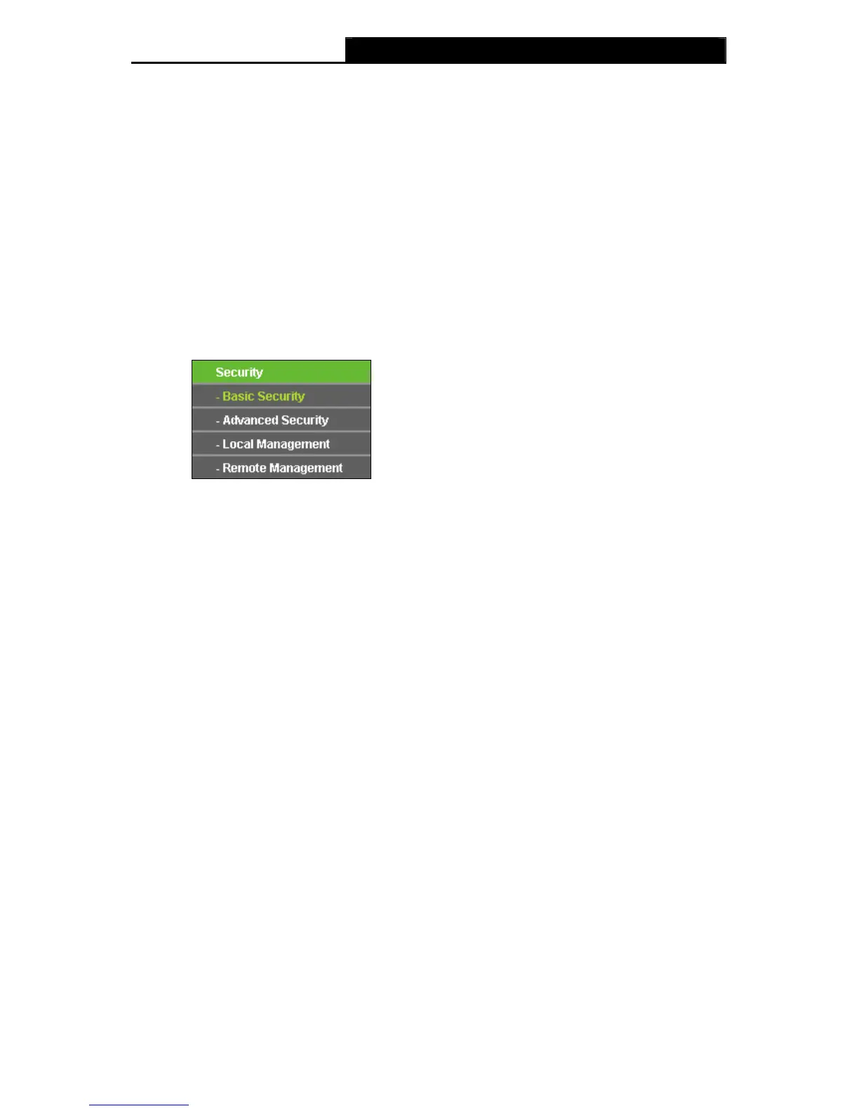 There are four submenus under the Security menu as shown in Figure 4-43: Basic Security,