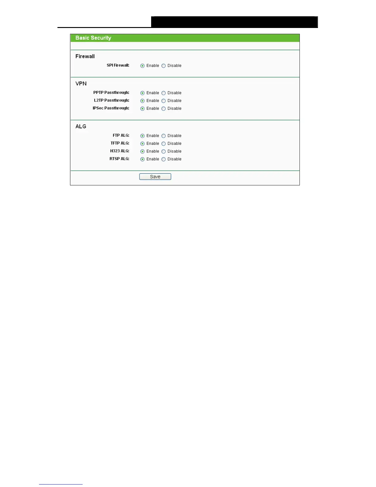 ¾ ALG - It is recommended to enable Application Layer Gateway (ALG) because ALG allows
