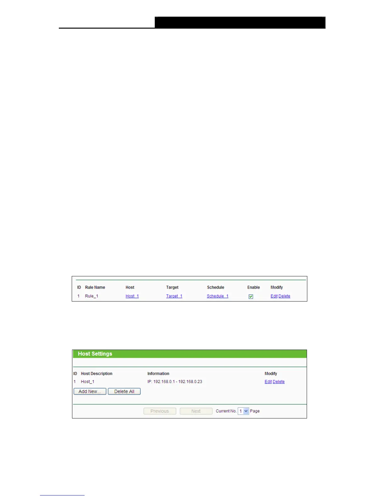 Choose menu “Access Control → Host”, you can view and set a Host list in the screen as