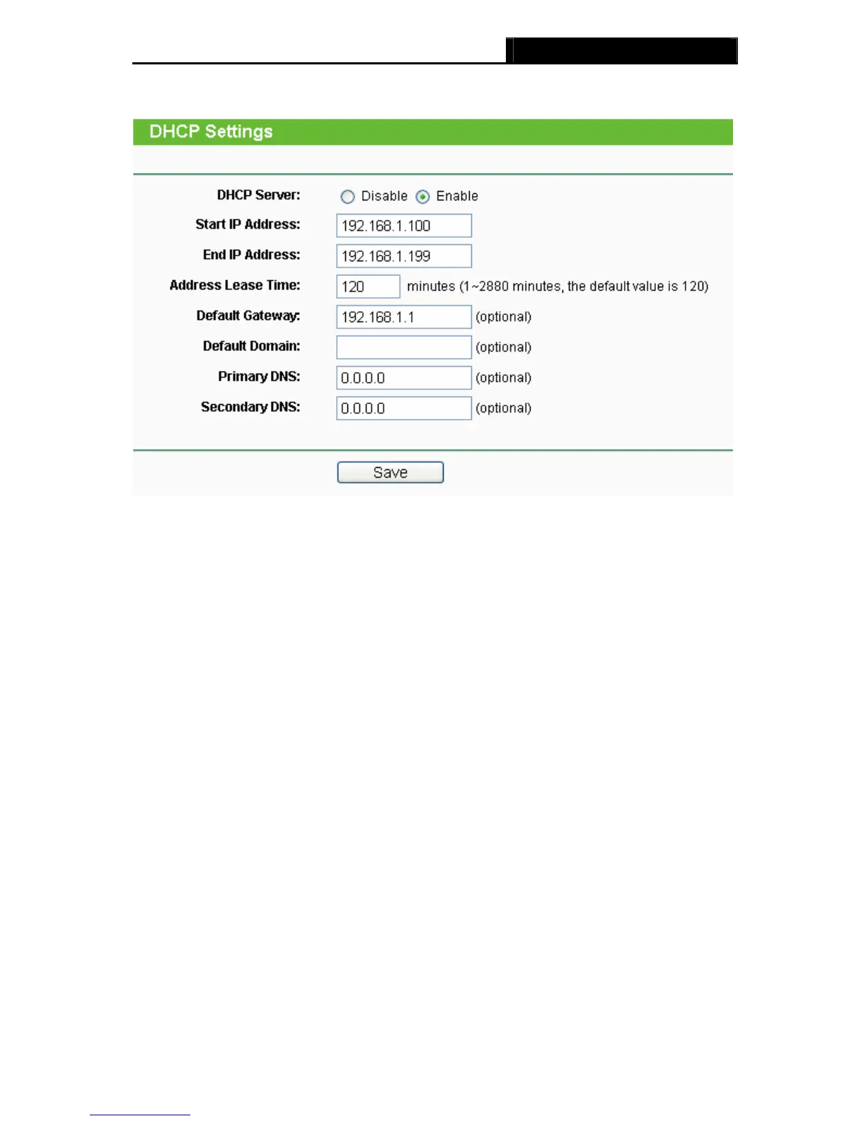 ¾ DHCP Server - Enable or Disable the DHCP server. If you disable the Server, you must