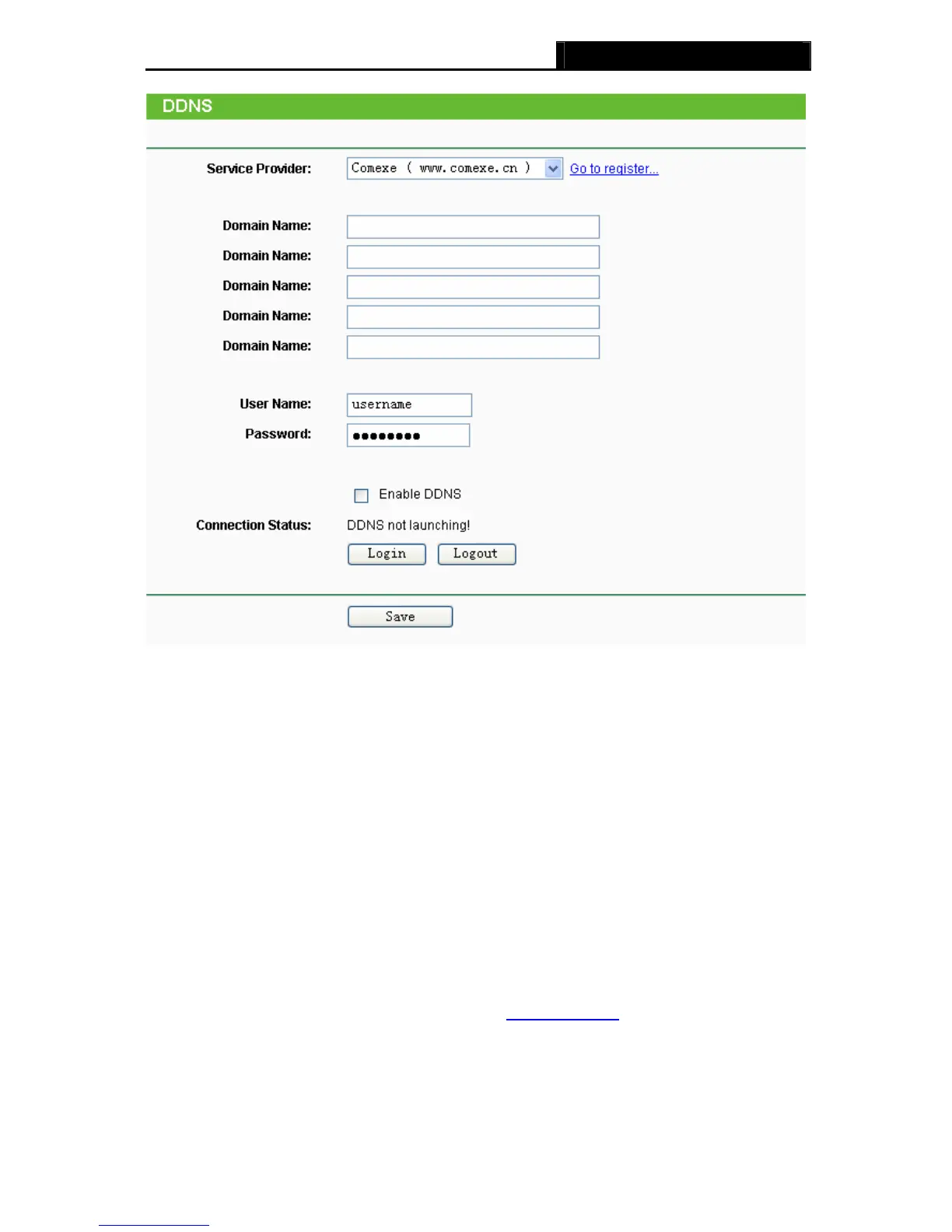 Connection Status -The status of the DDNS service connection is displayed here.