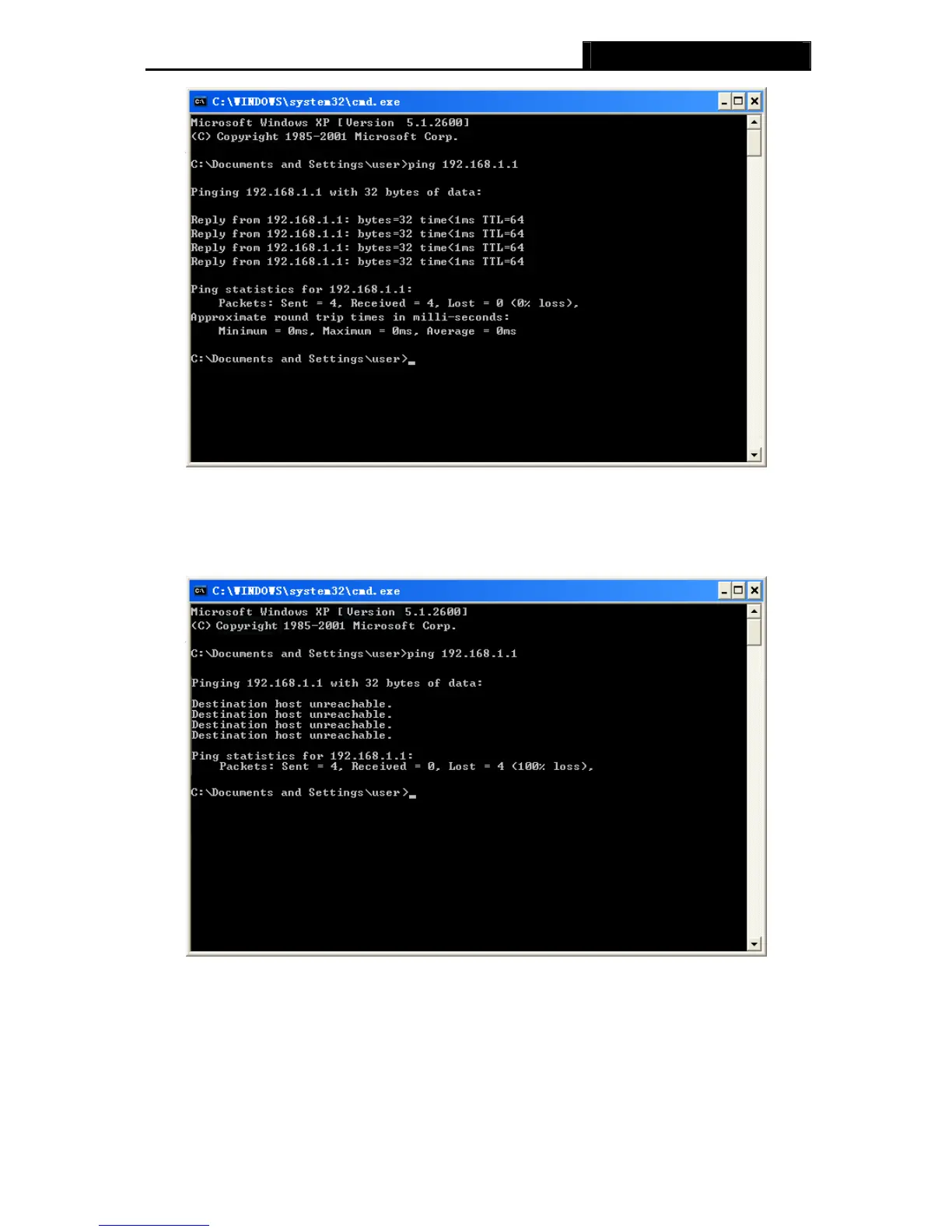 ¾ If the result displayed is similar to the Figure 3-2, it means the connection between your PC