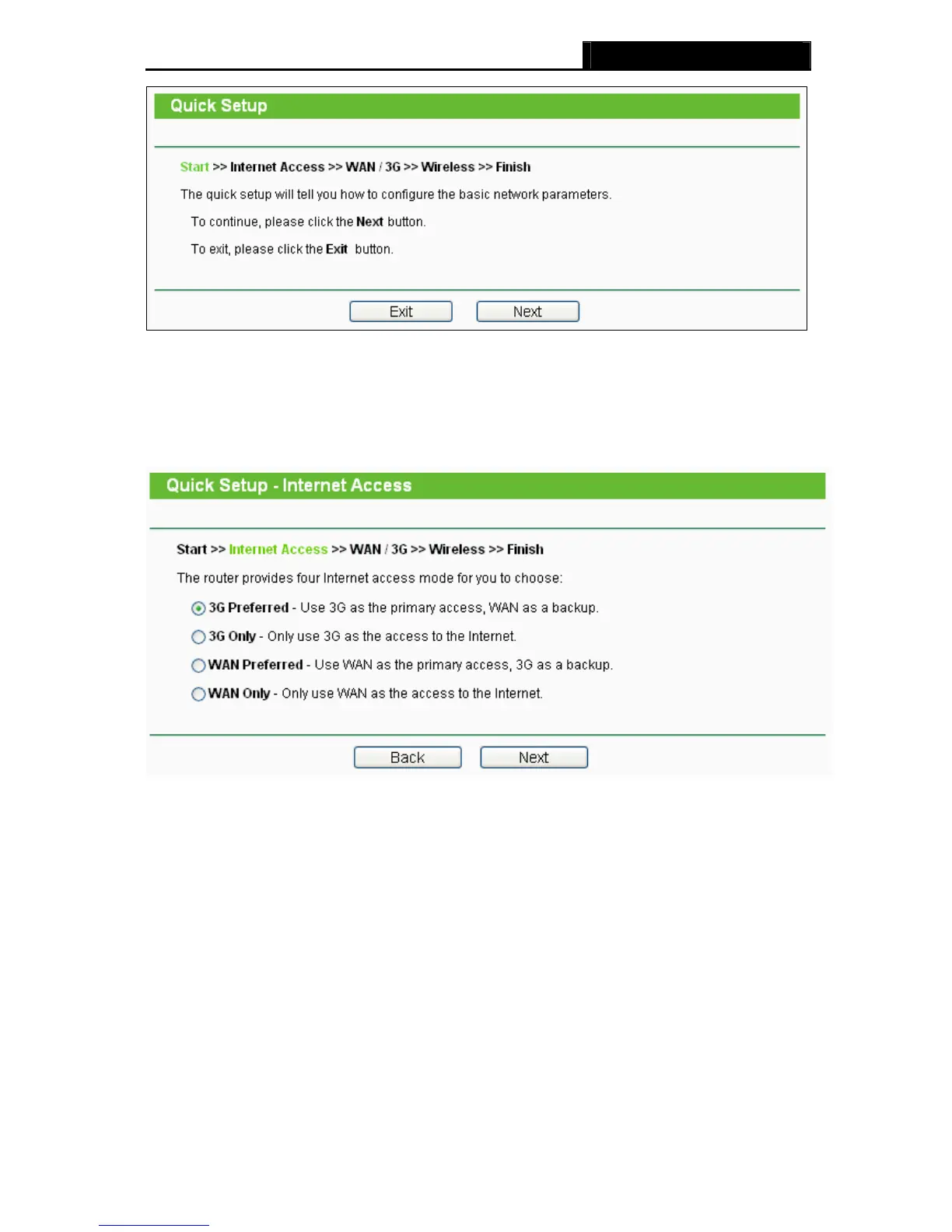 In this mode, the router will try 3G access first. If 3G access fails and WAN access is valid, or
