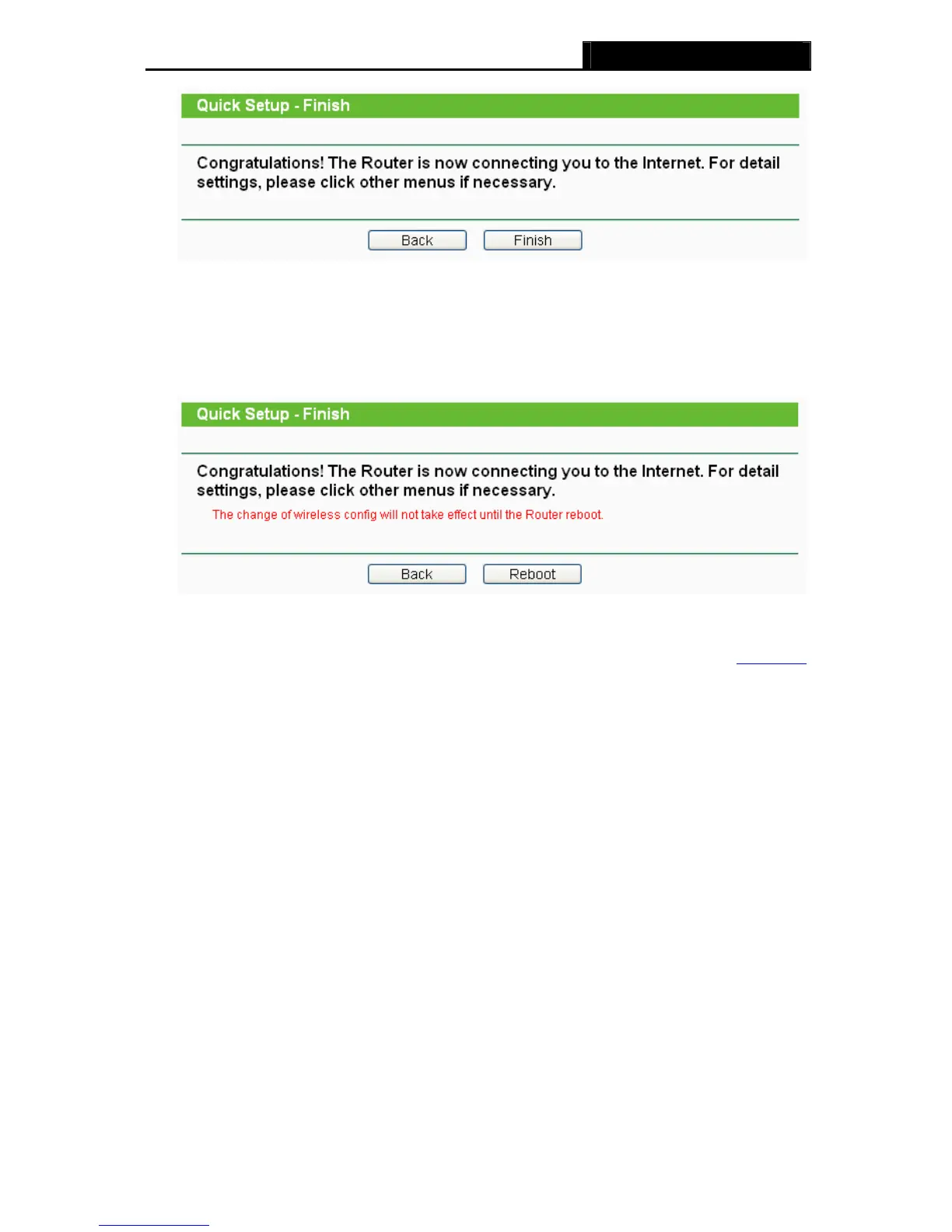 If there are something changed on the Wireless page, you will see the Finish page as shown