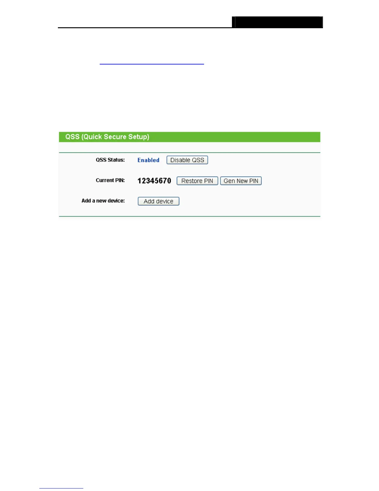 ¾ QSS Status - Enable or disable the QSS function here.
