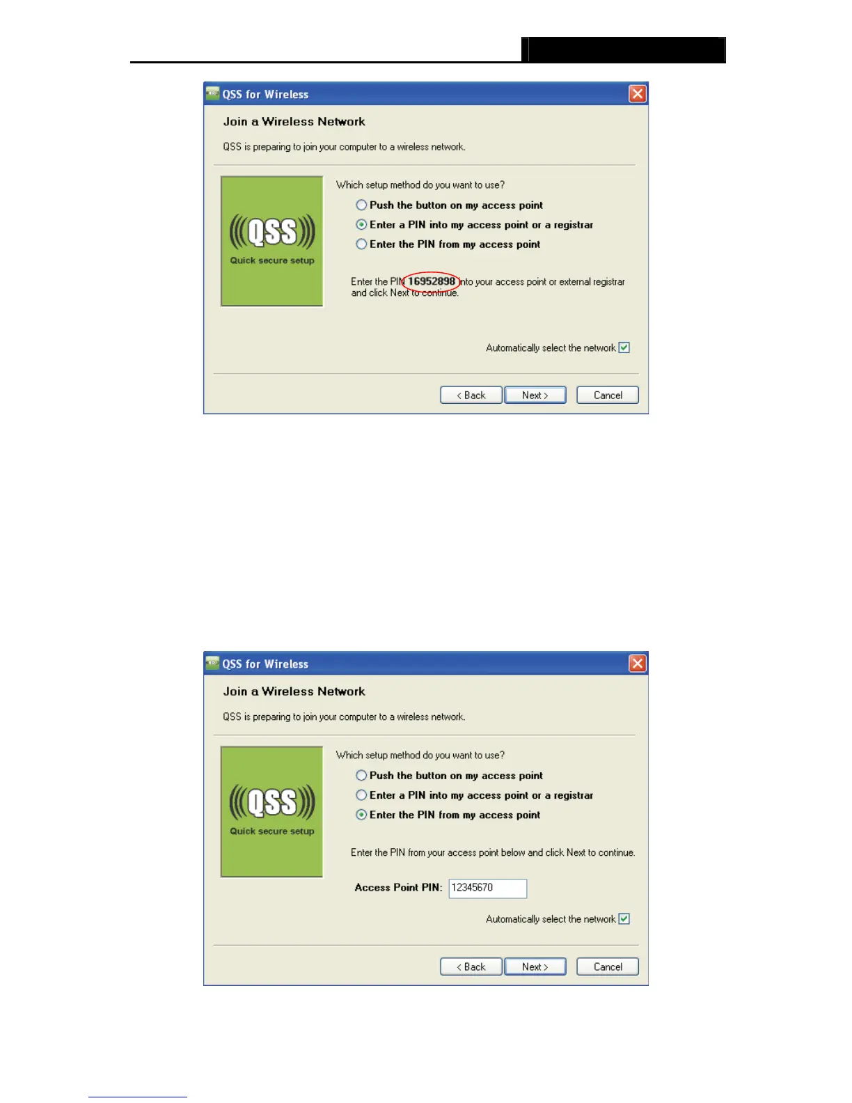access point in the configuration utility of the QSS as below, and enter the PIN code of