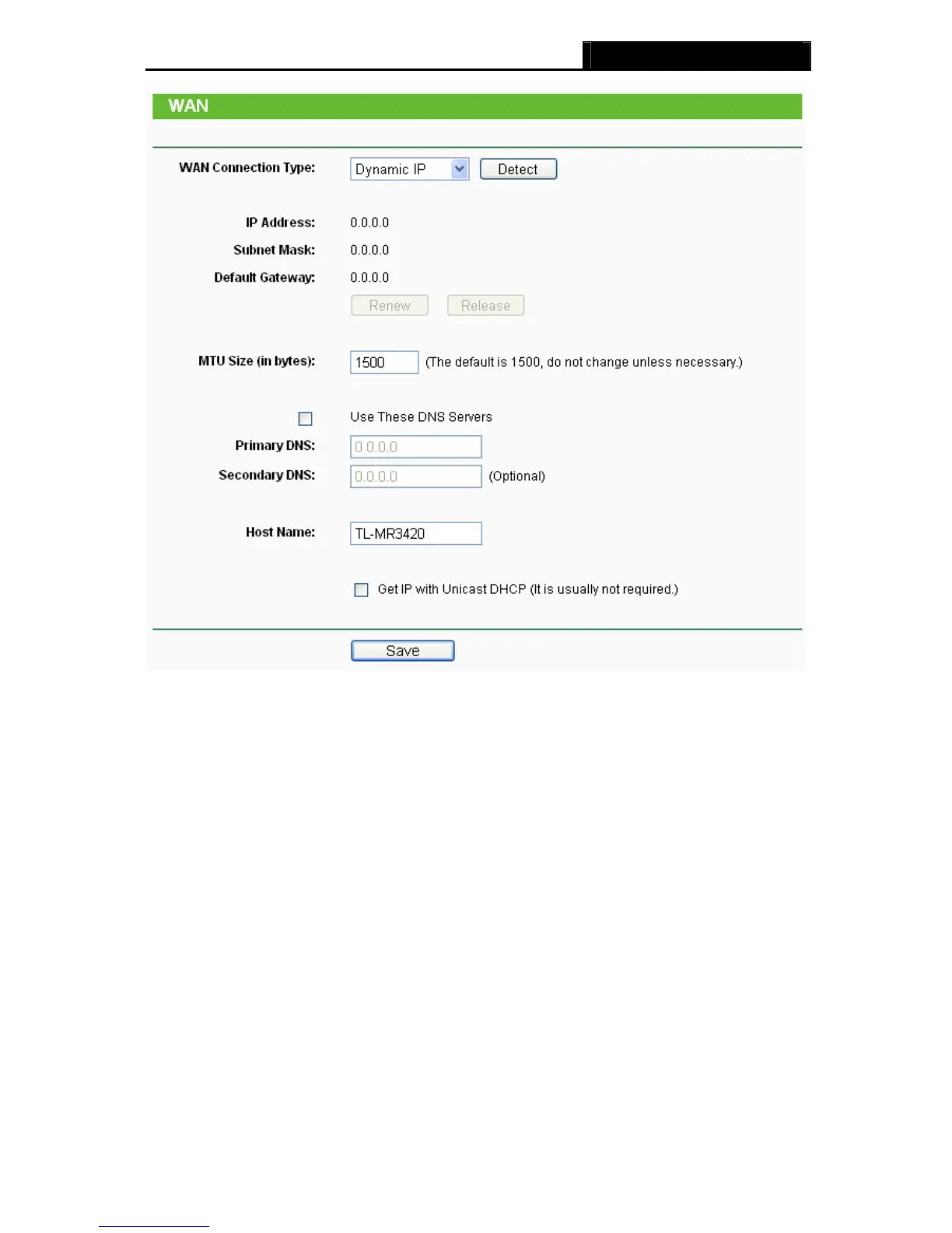Figure 4-12 WAN - Dynamic IP