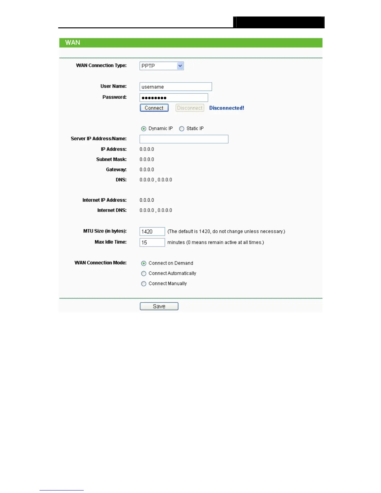 connection after a specified period of inactivity (Max Idle Time). If your Internet connection