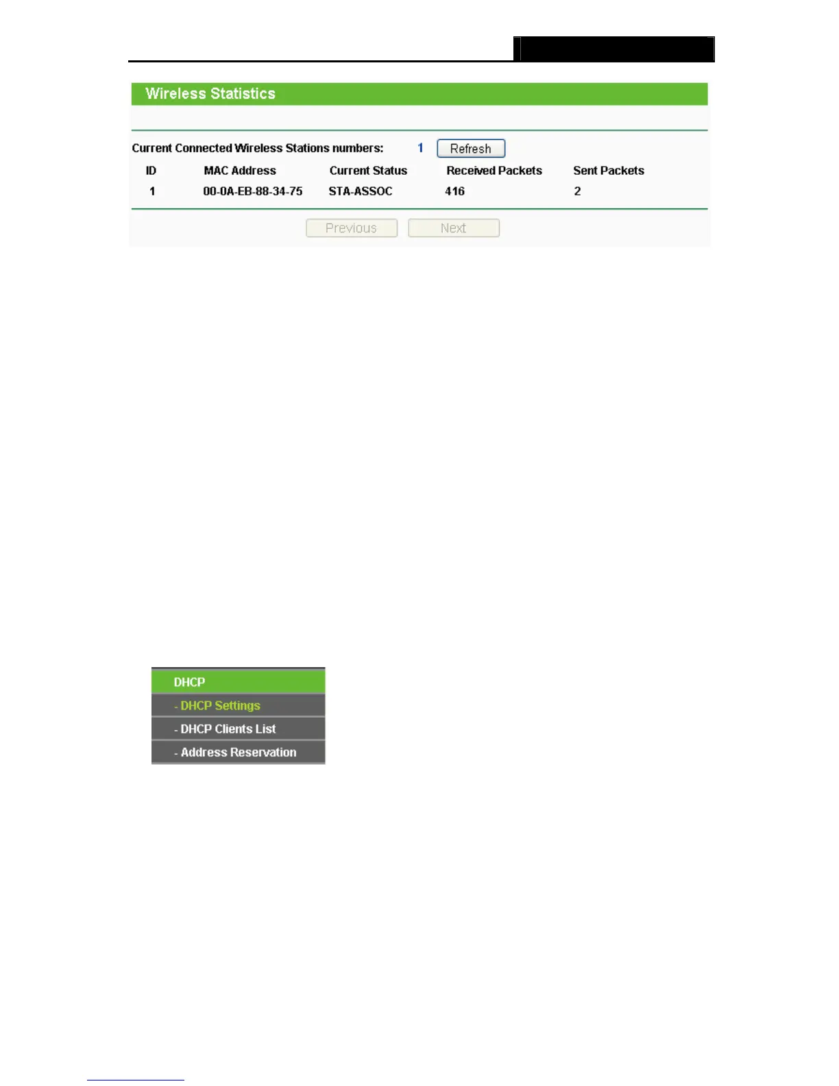 connected wireless stations, click on the Refresh button.