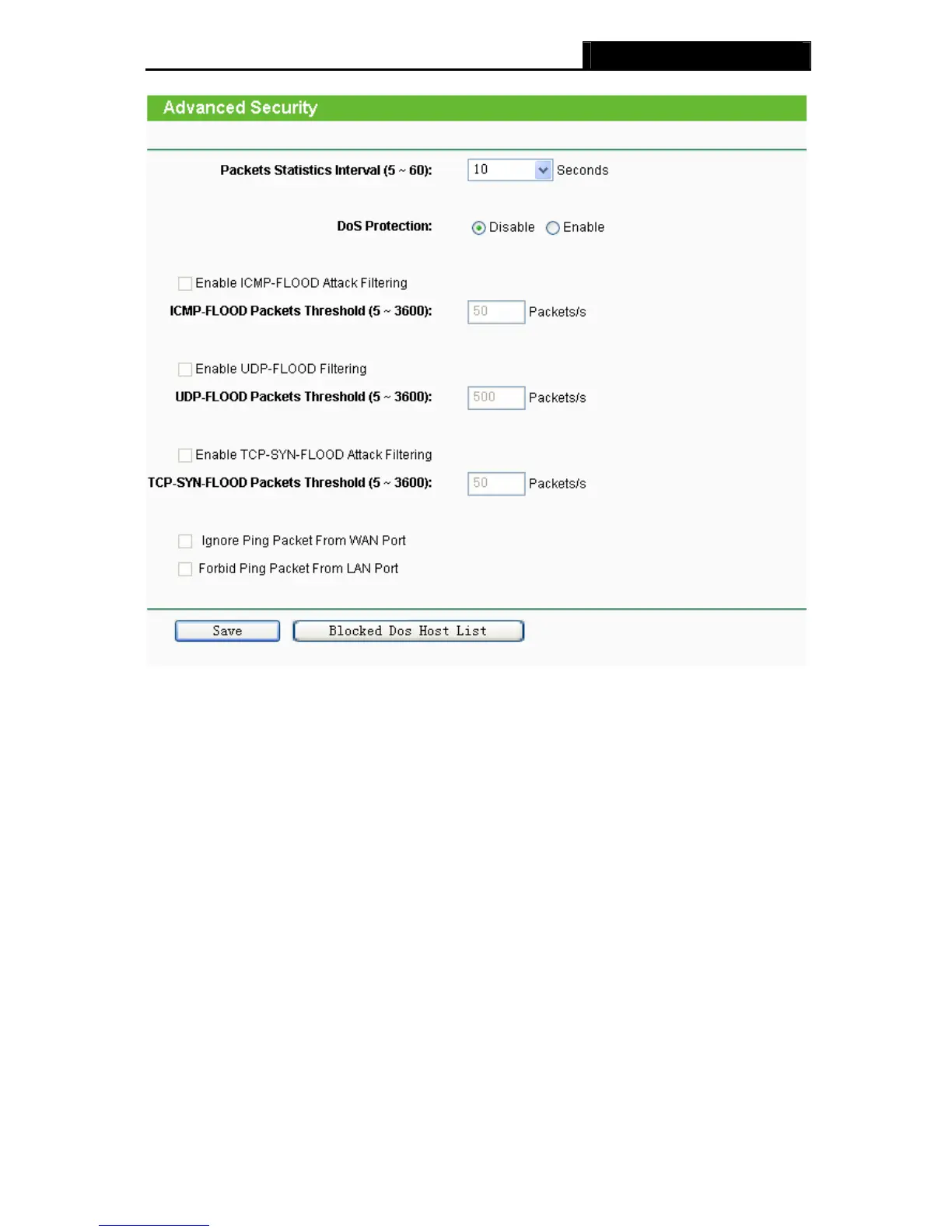 ¾ Packets Statistics Interval (5~60) - The default value is 10. Select a value between 5 and
