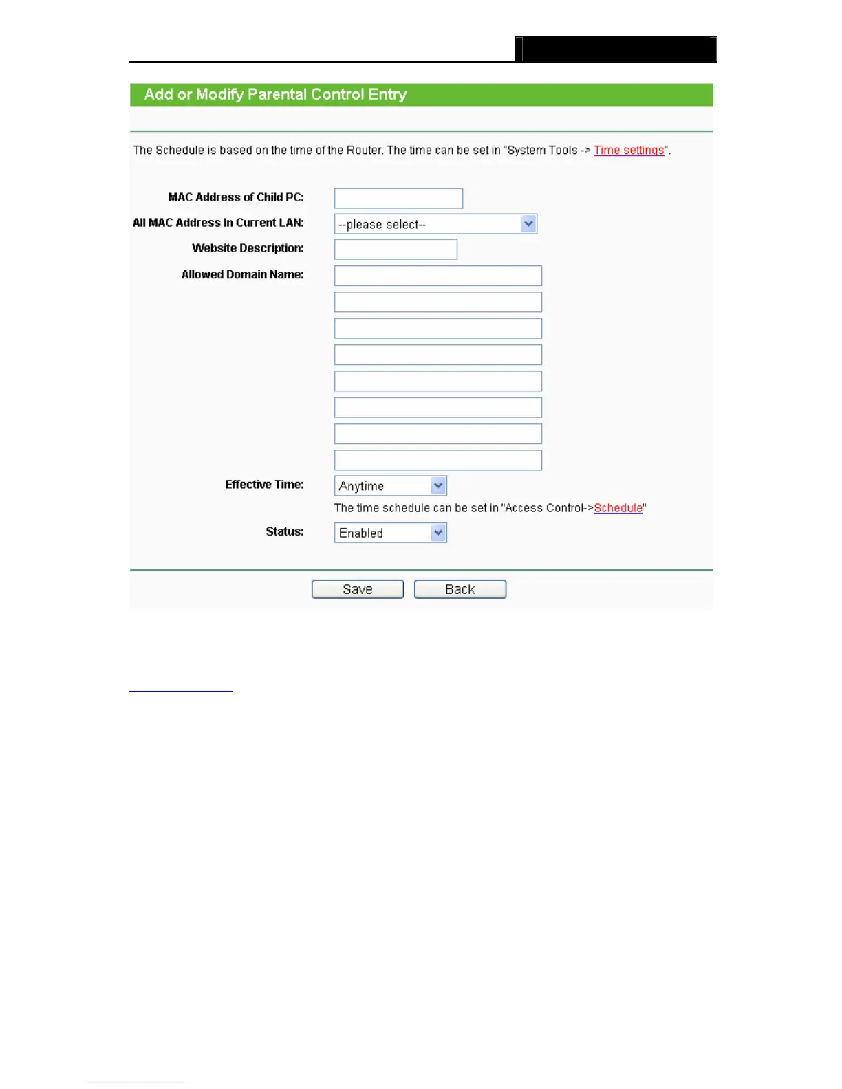 For example: If you desire that the child PC with MAC address 00-11-22-33-44-AA can access