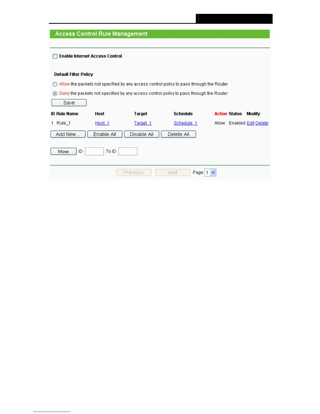 ¾ Status - This field displays the status of the rule. Enabled means the rule will take effect,