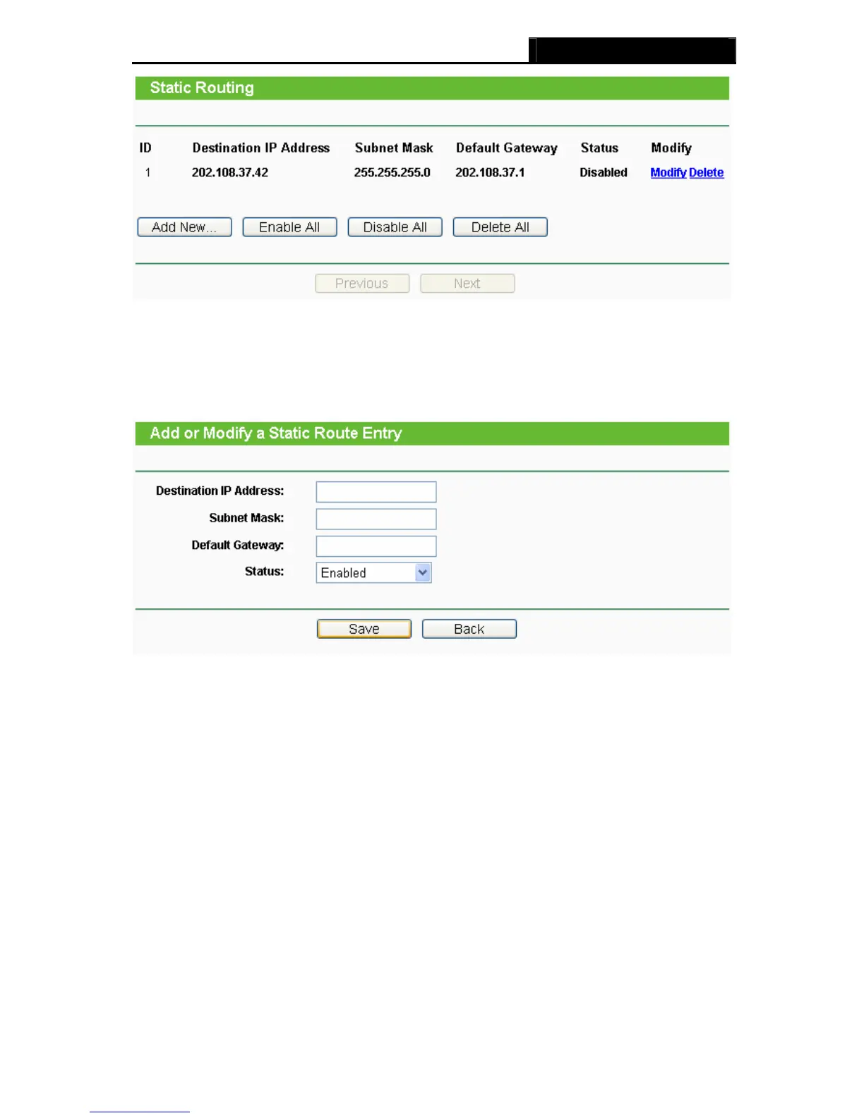 3. Select Enabled or Disabled for this entry on the Status pull-down list.