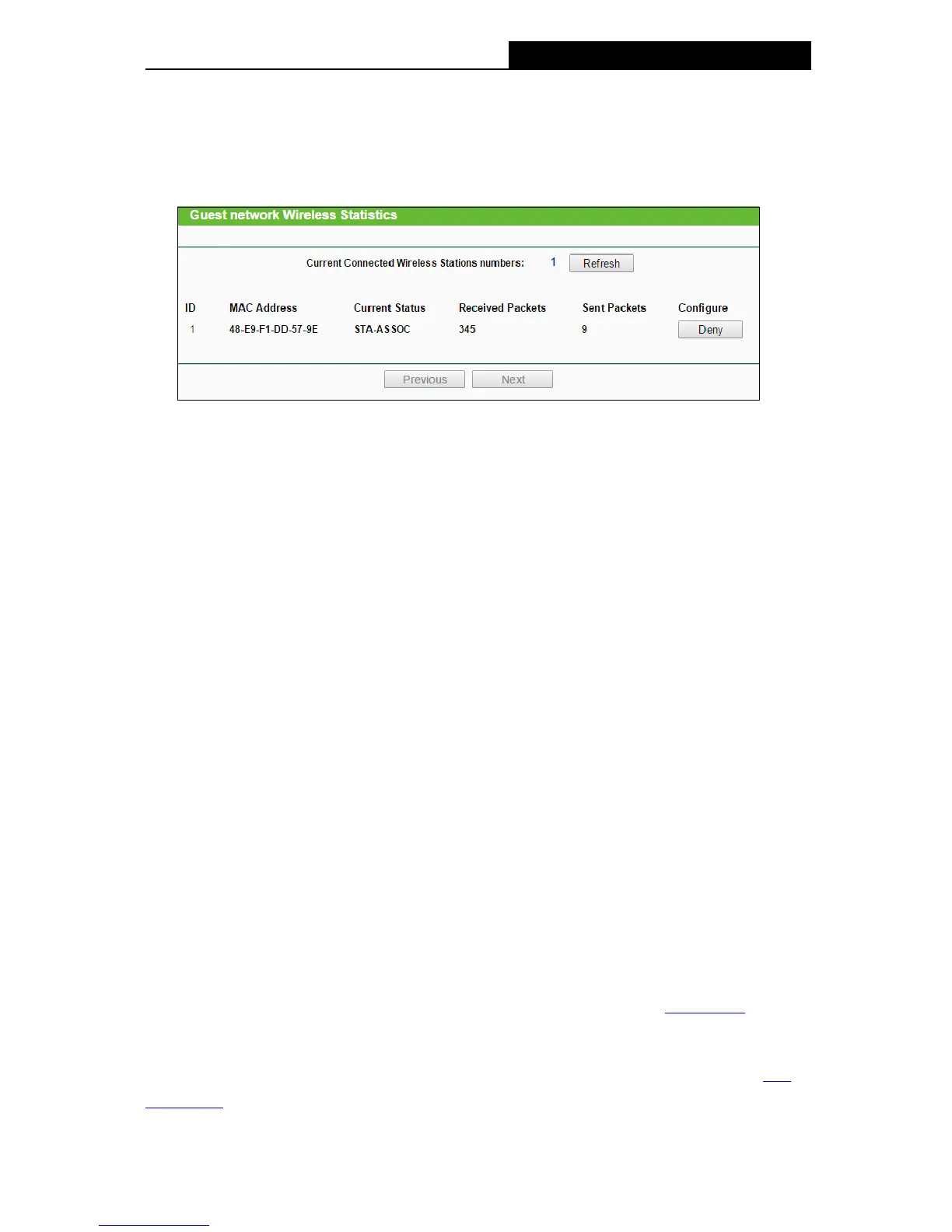 Deny: if the Wireless MAC Filtering function enable, deny the station to access.