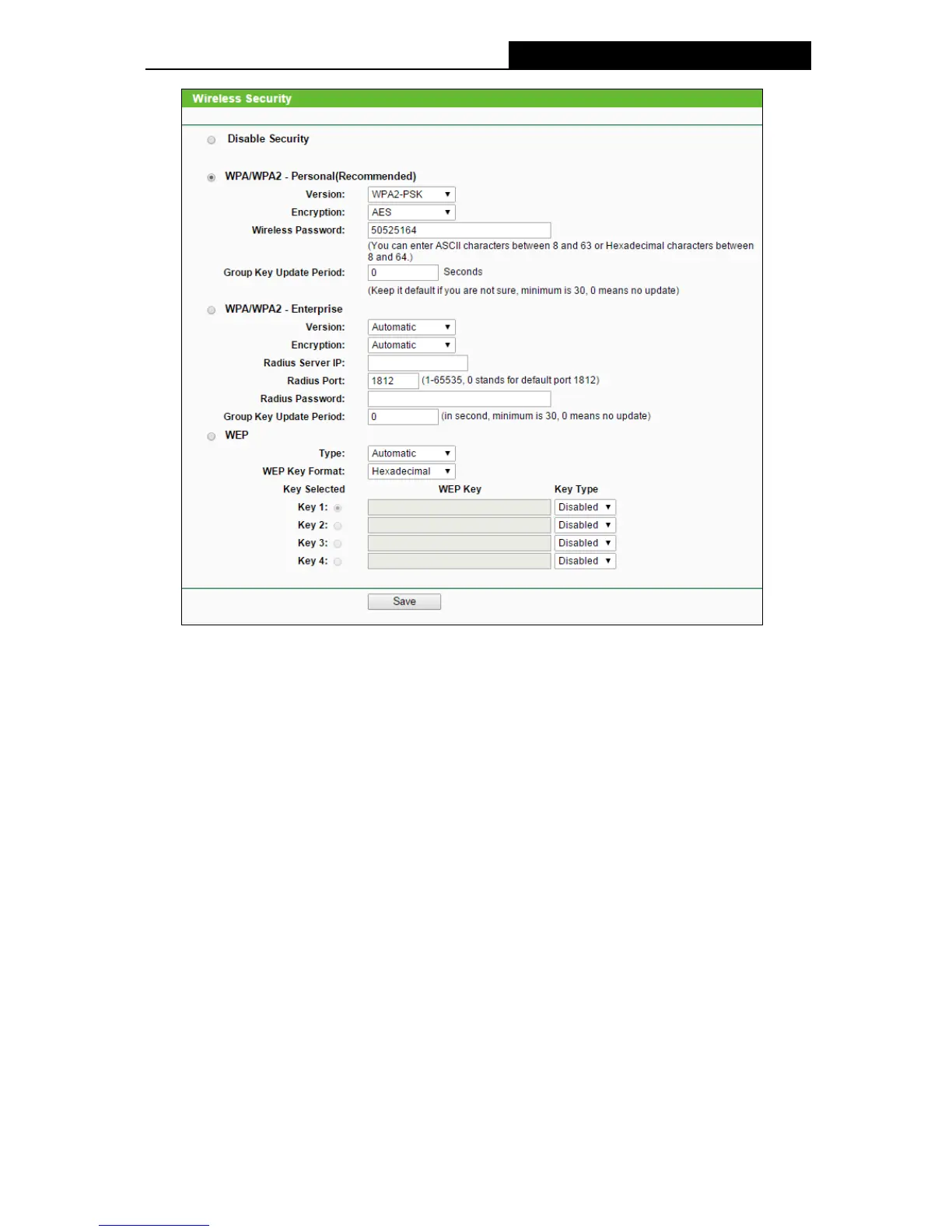 If you check the WPA/WPA2 – Personal (Recommended) radio button and choose TKIP