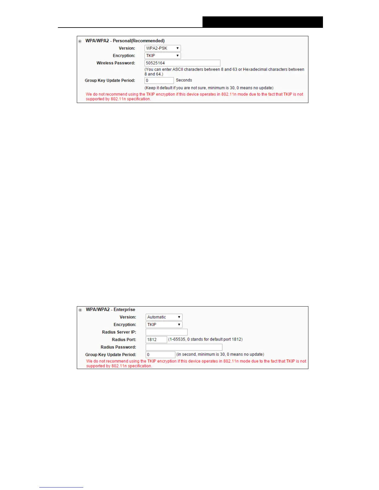 If you check the WPA/WPA2 - Enterprise radio button and choose TKIP encryption, you