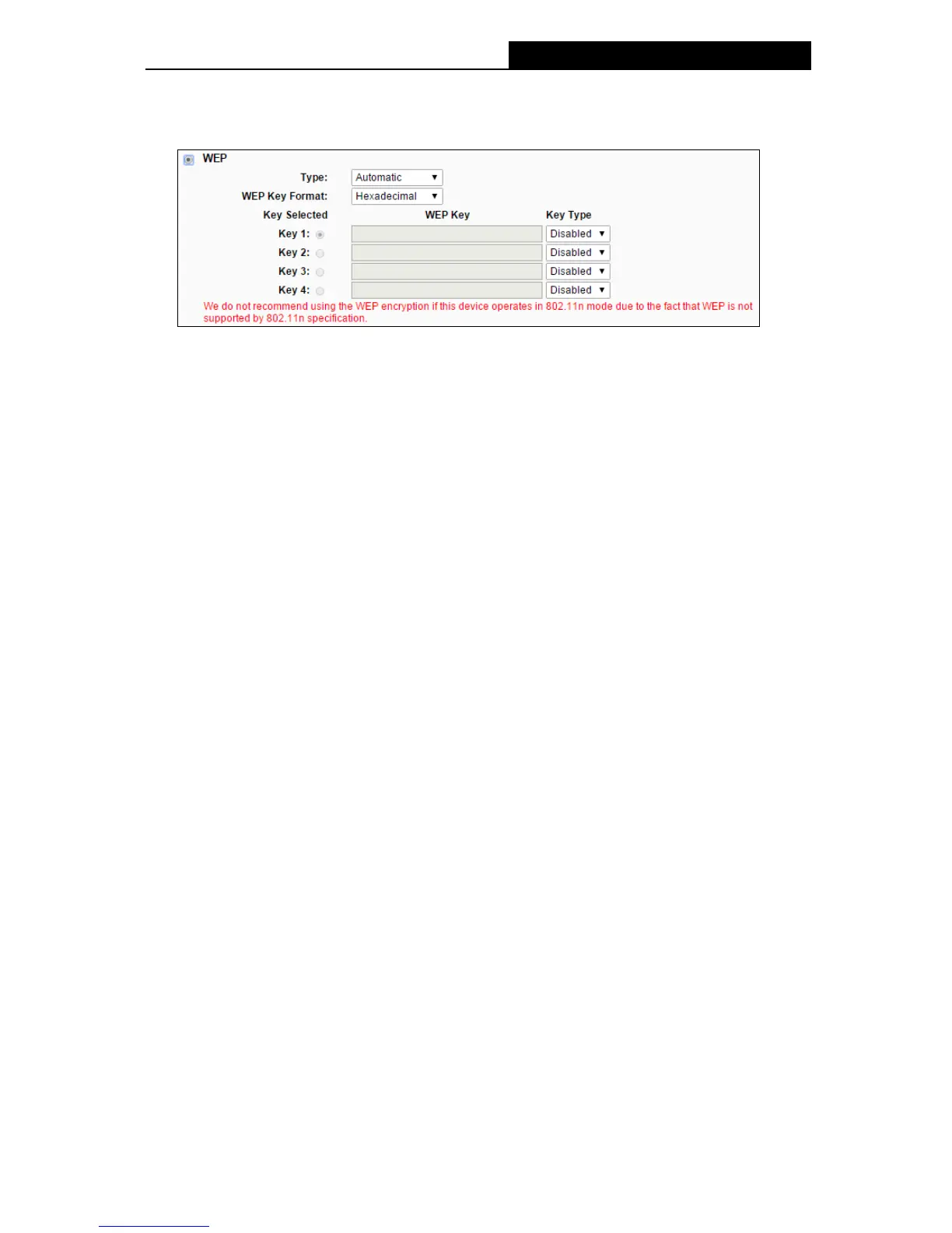 • Type - you can choose the type for the WEP security on the pull-down list. The default
