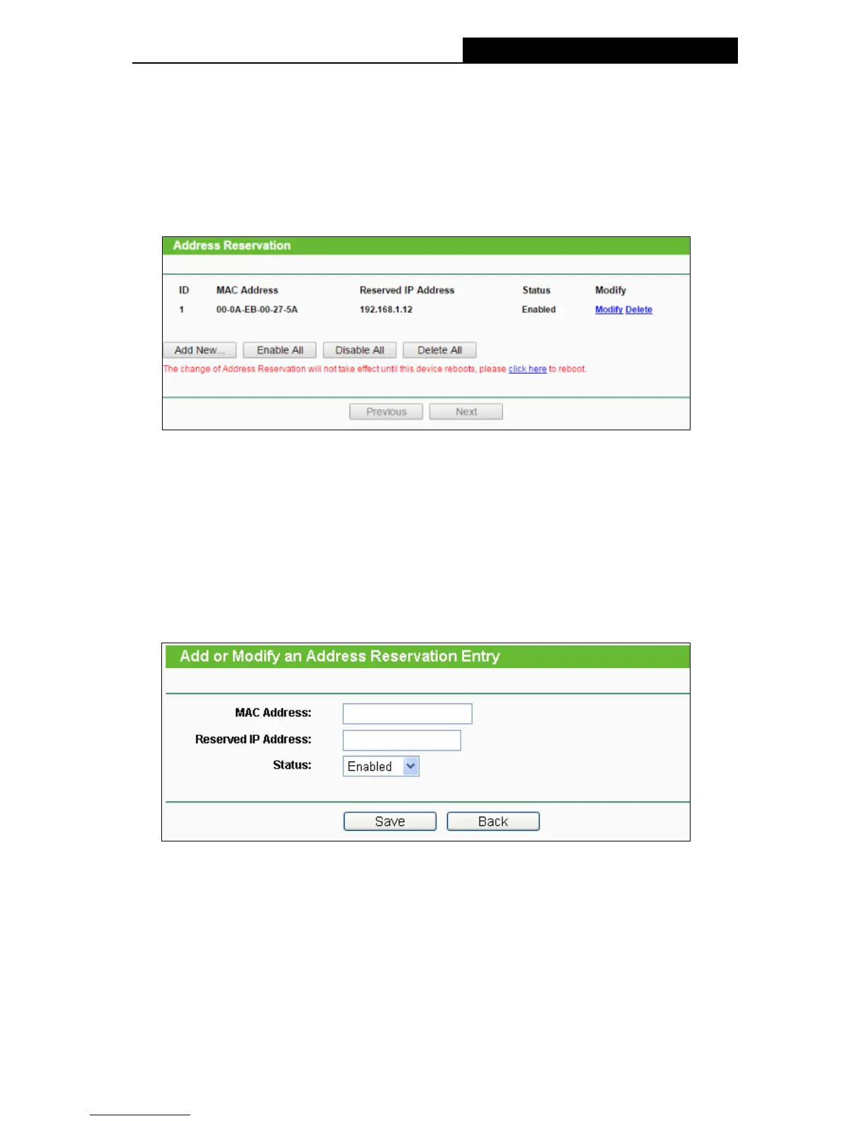Figure 4-34 Add or Modify an Address Reservation Entry
