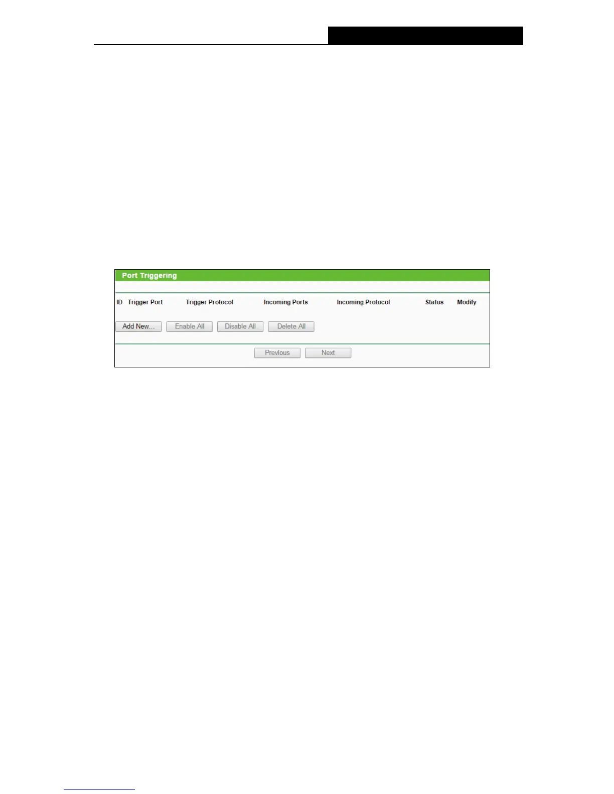 Port Triggering”, you can view and add port triggering in the