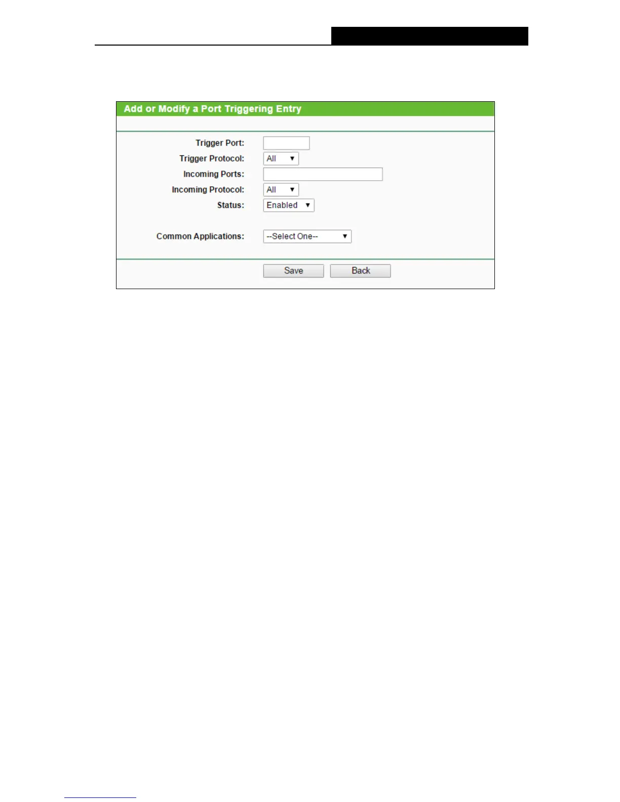 Applications do not have the application you need, enter the Trigger Port and the