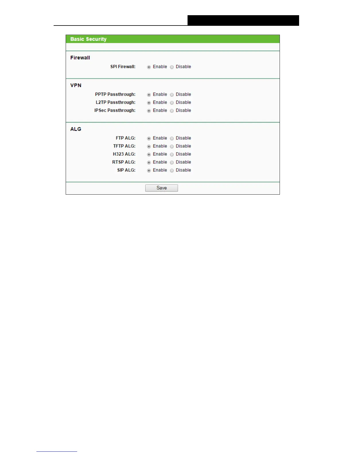 tunnels to pass through the router, click Enable.