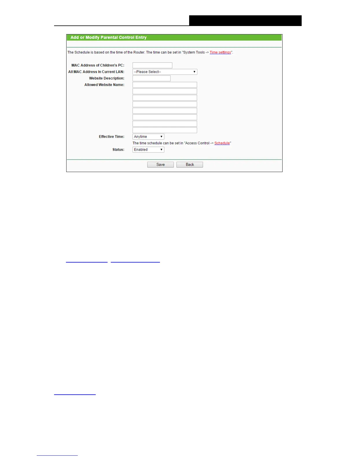 For example: If you desire that the child PC with MAC address 00-11-22-33-44-AA can access