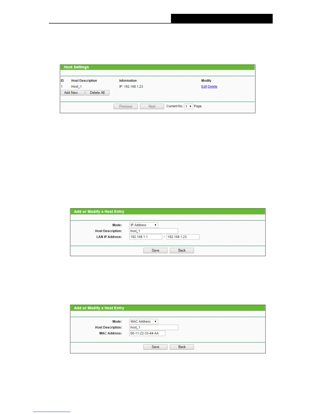 Figure 4-58 Add or Modify a Host Entry