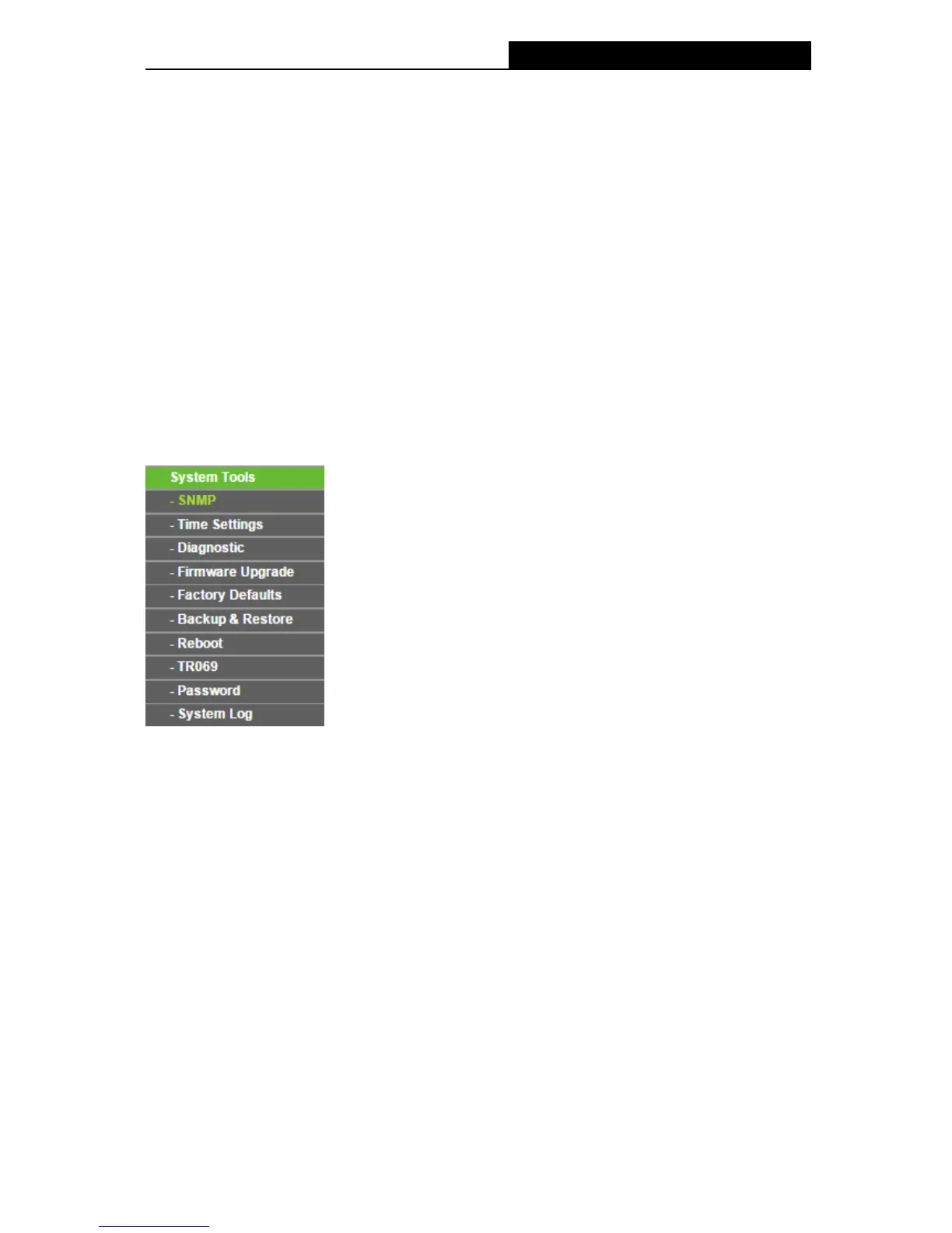 Choose menu “System Tools”, and you can see the submenus under the main menu: SNMP