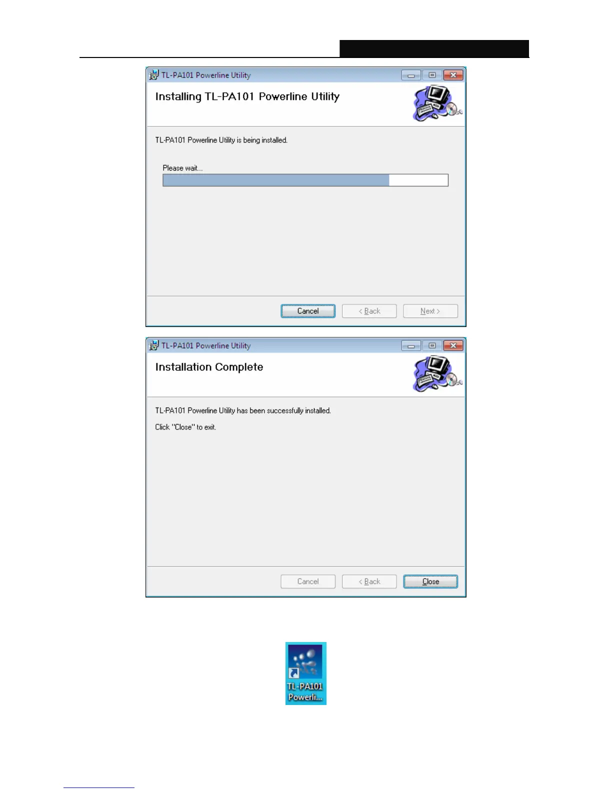 Step 2: After the installation, a shortcut to the “TL-PA101 Powerline Utility” application icon is provided