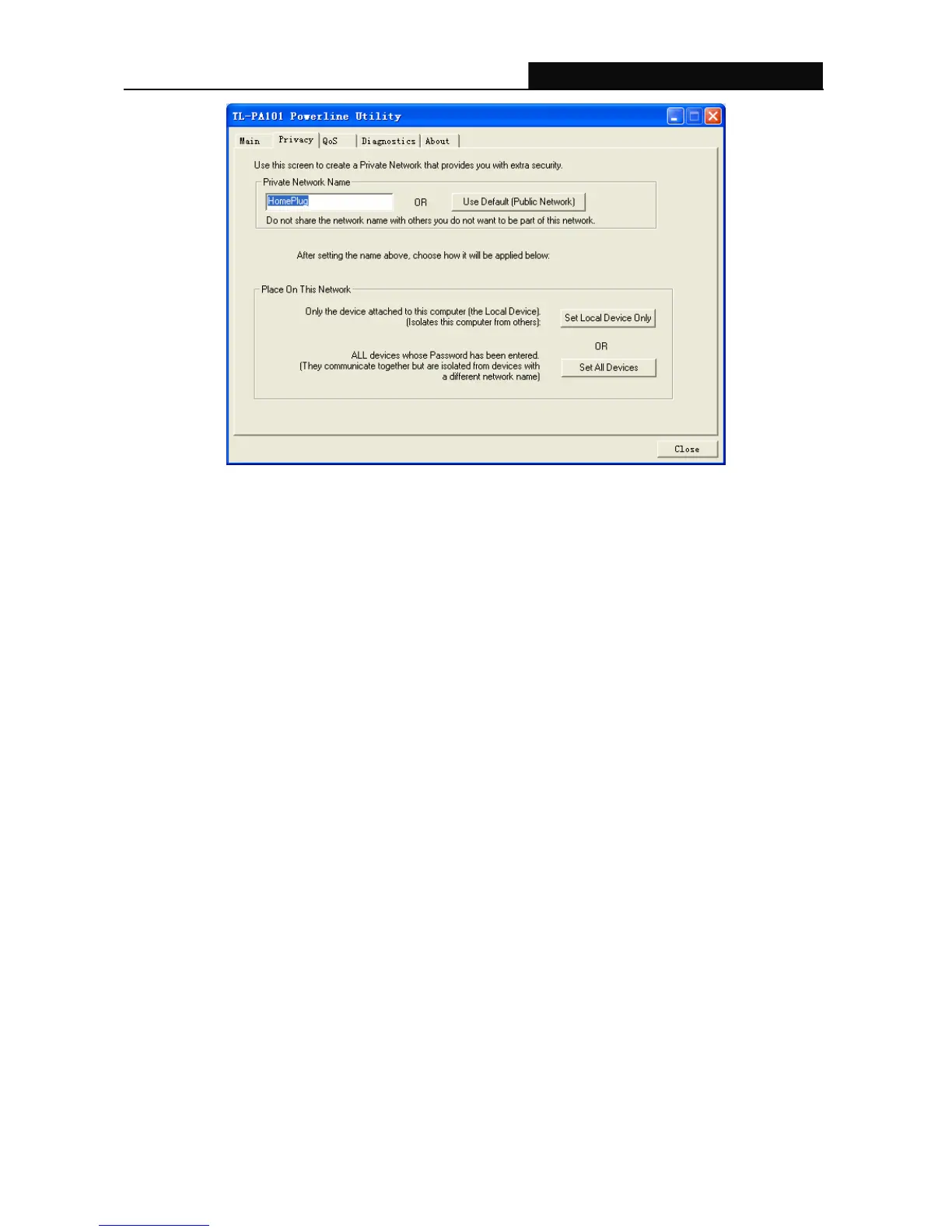 ¾ Set Local Device Only: Click this tab to change the network name of the local Powerline Ethernet