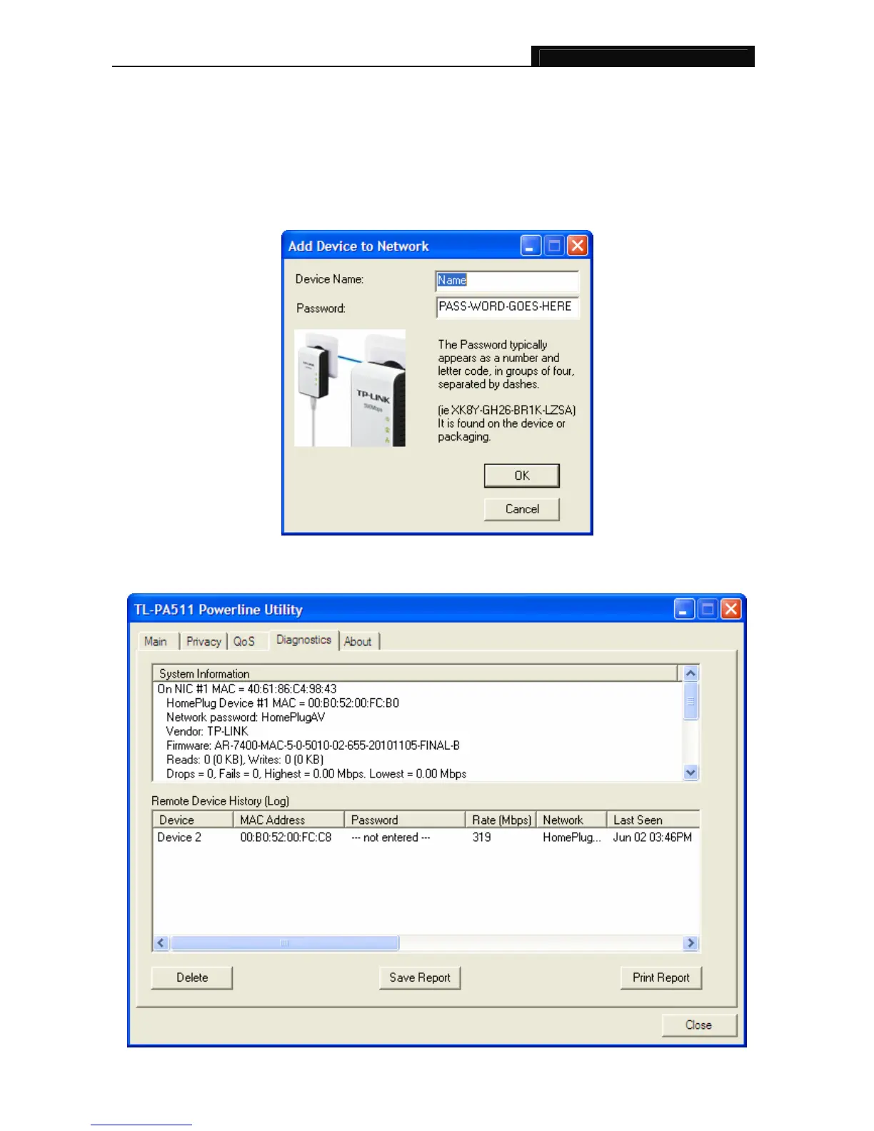 homepage. The dialog box allows you to enter both the selected device’s name and password. Note that