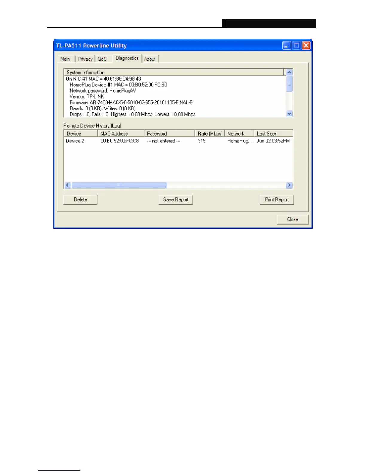 Click the “Delete” tab to delete the Powerline Adapter device which is no longer part of the network.