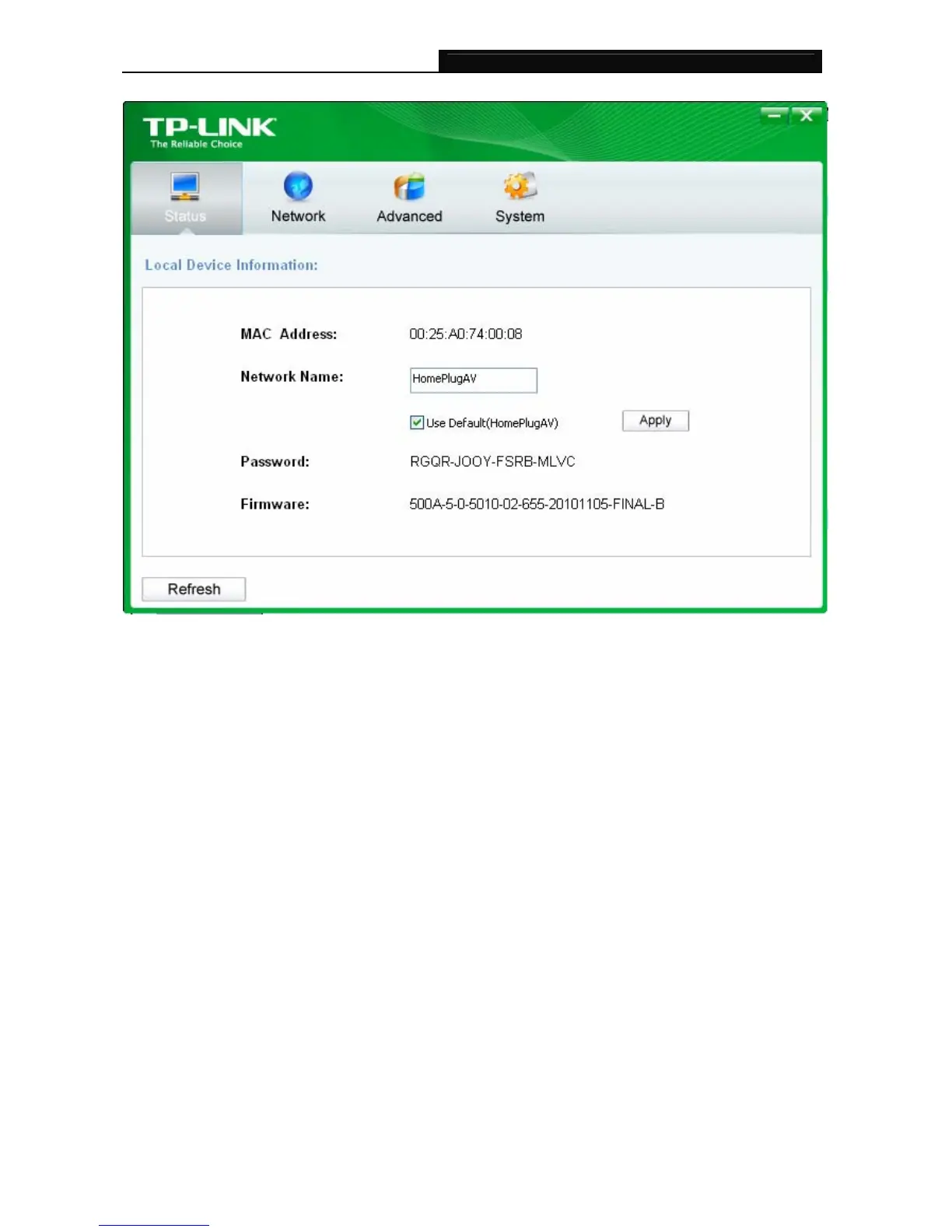 ¾ Password: Displays the password of the current powerline adapter. Every powerline adapter has its