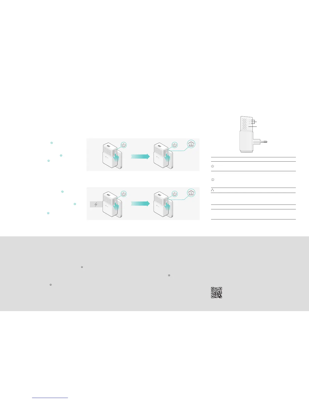 Press and hold for 1 second to set up or join a secure powerline network.