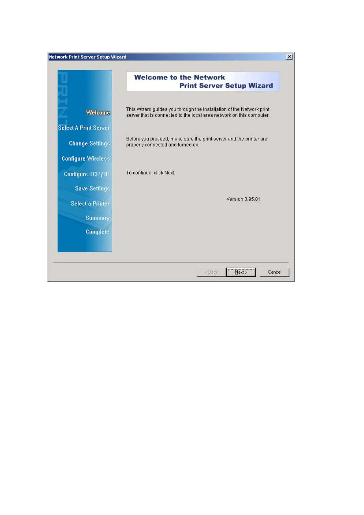 4. Choose Setup Wizard to install the print server and configure the connected printer.
