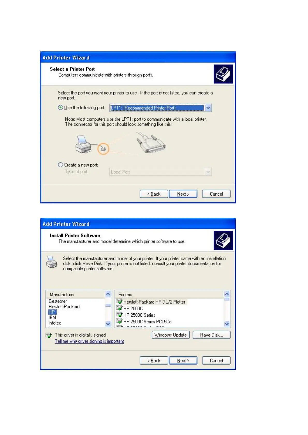 11. Make sure the Use the following port radio-button is clicked and select LPT1: