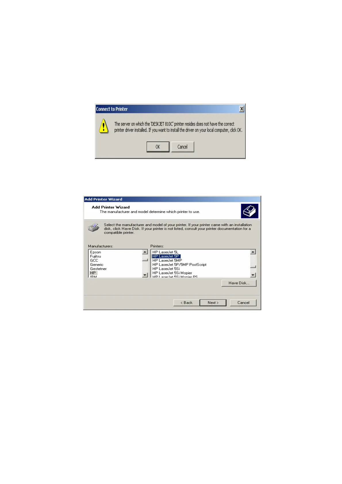 Select the appropriate printer manufacturer and printer type and click “Next”, appear as