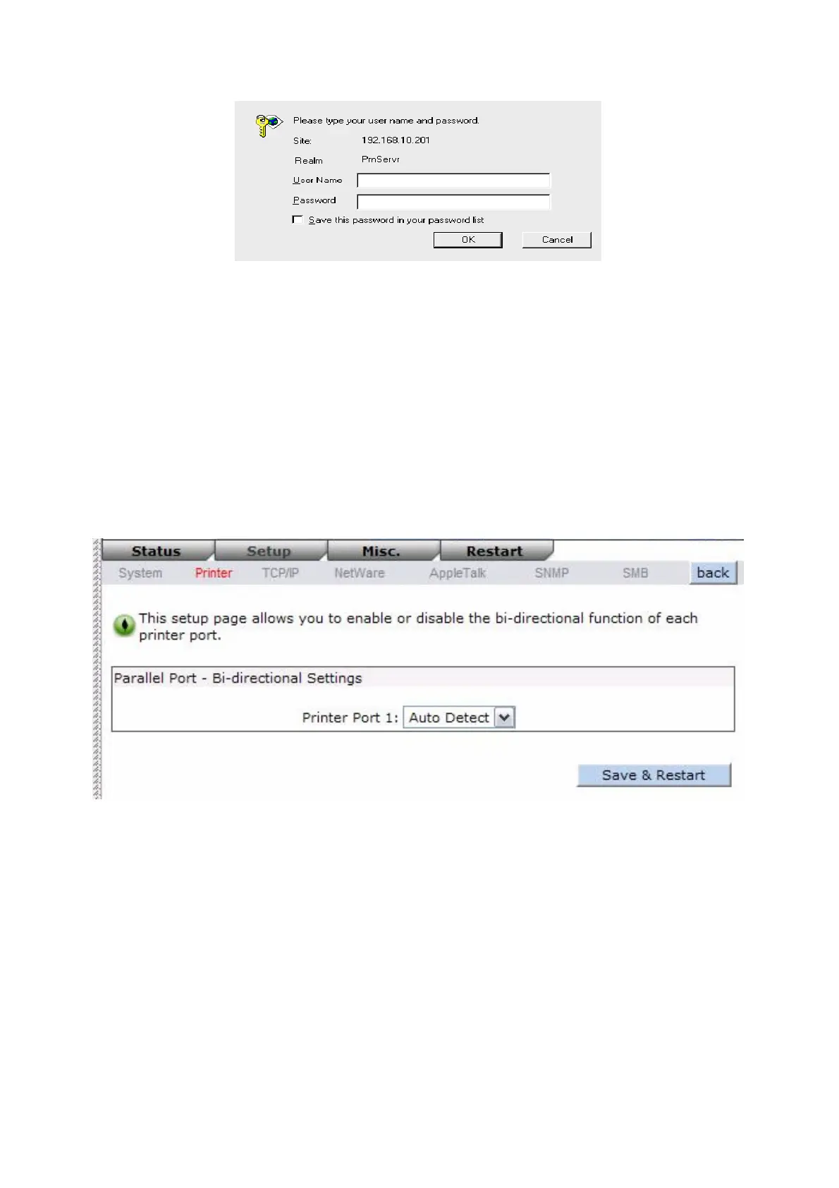 Bi-directional Settings: This option allows you to select the bi-directional of the print server.