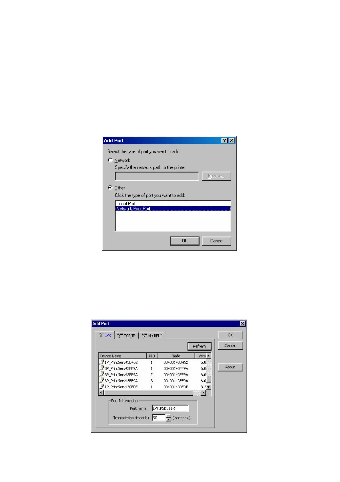 of the Node ID, located on the back of the print server unit). Select one printer server port
