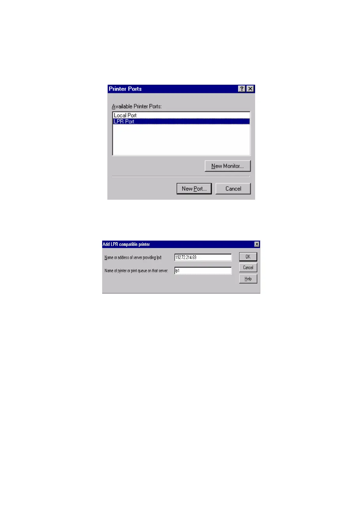 5. From the Printer Ports box as shown in the following picture, select the LPR Port.