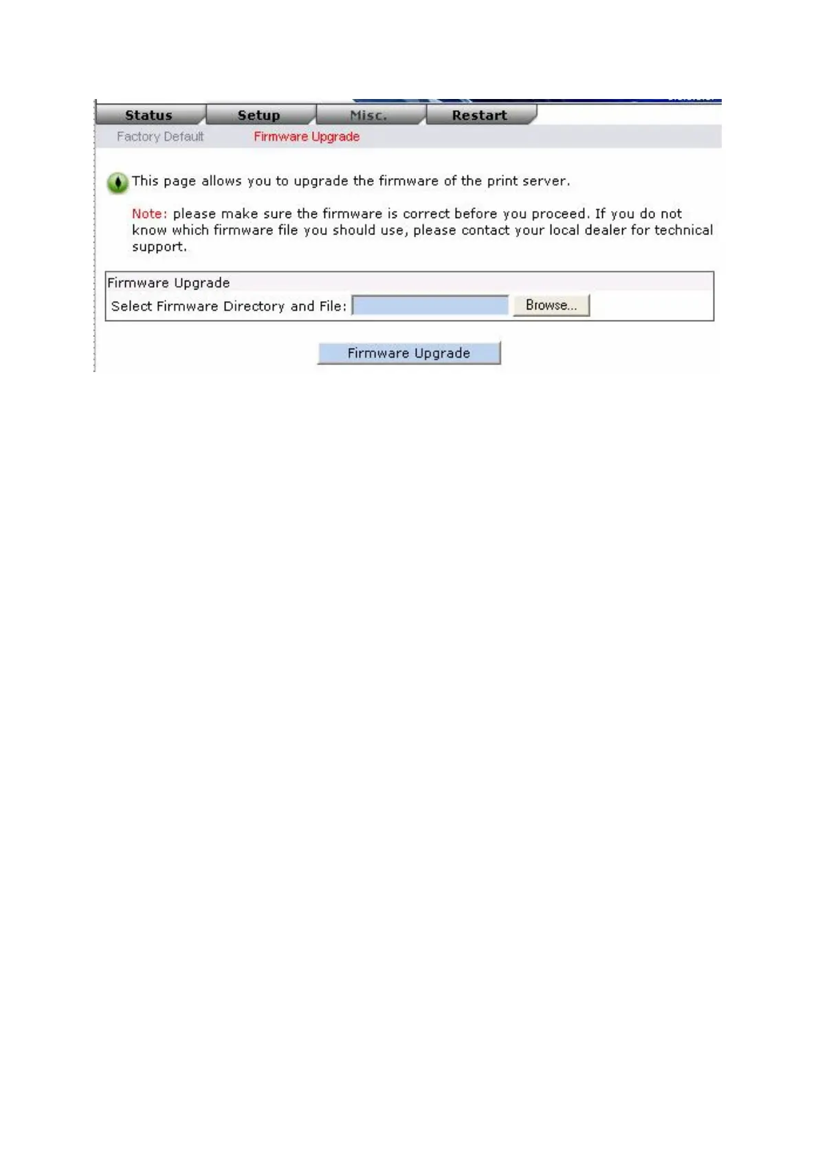 4. Click Browse… and select the firmware file.