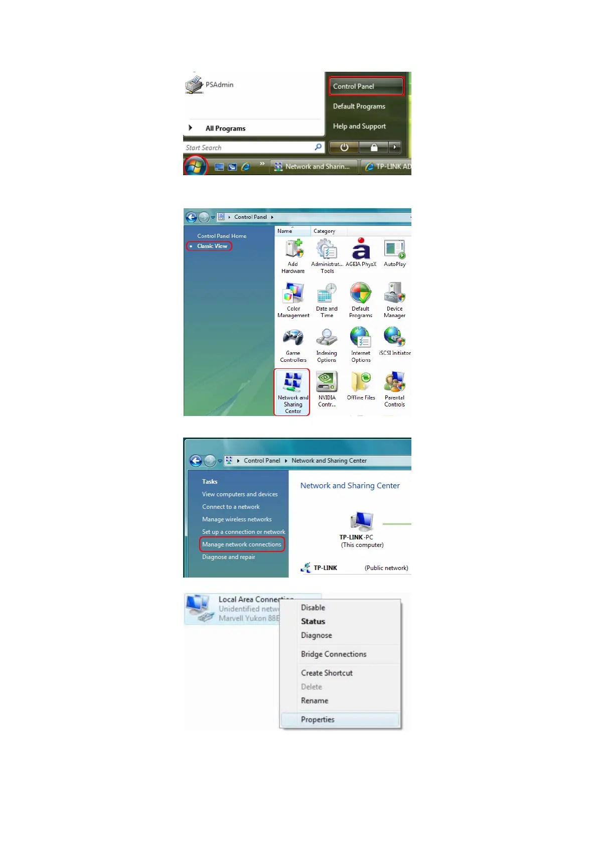2) Select Classic View on the left side then double-click Networking and Sharing center;