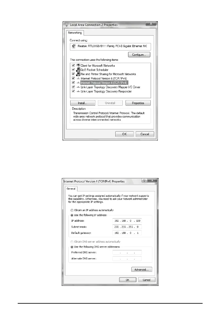 7) Type IP address is 192.168.0.x (x is from 2 to 254), Subnet mask is