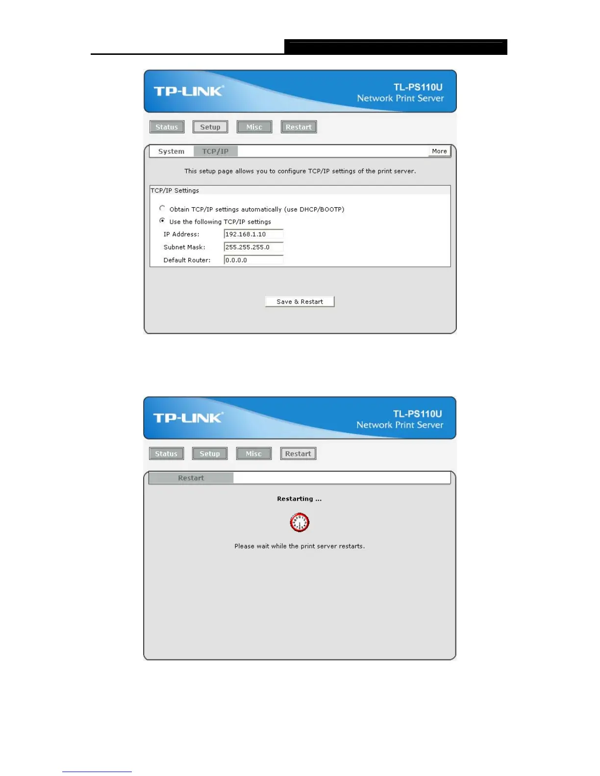 10. Click Save & Restart and then wait the print server to save the changes and restart.