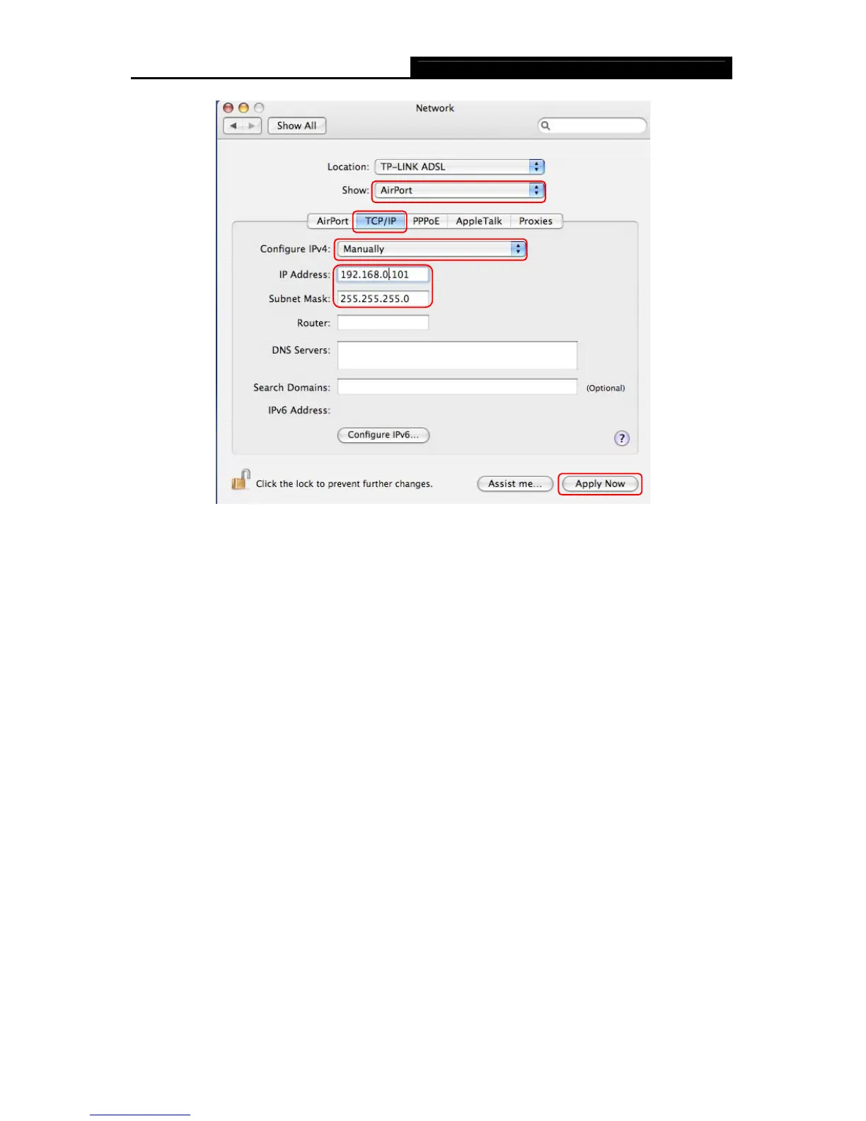 4. Open the Safari and log into the TL-PS110U. Change its IP Address, Subnet Mask and