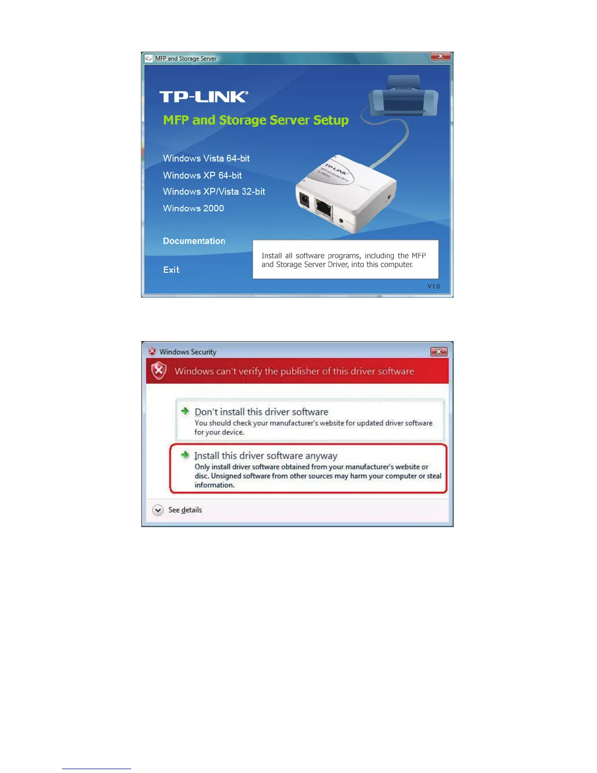 4) During the driver installation, a Windows Vista security message will appear. Select “Install this