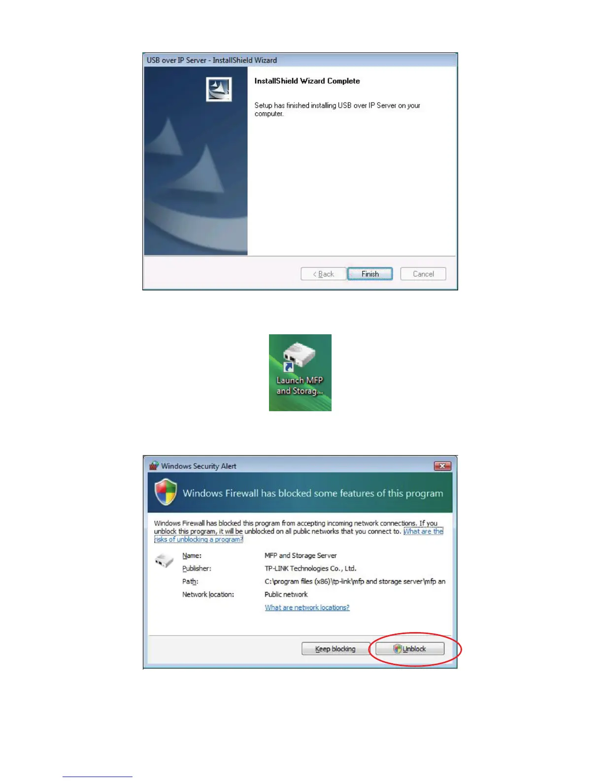 6) Once the installation process has been completed, an “Launch MFP and Storage Server” icon will be