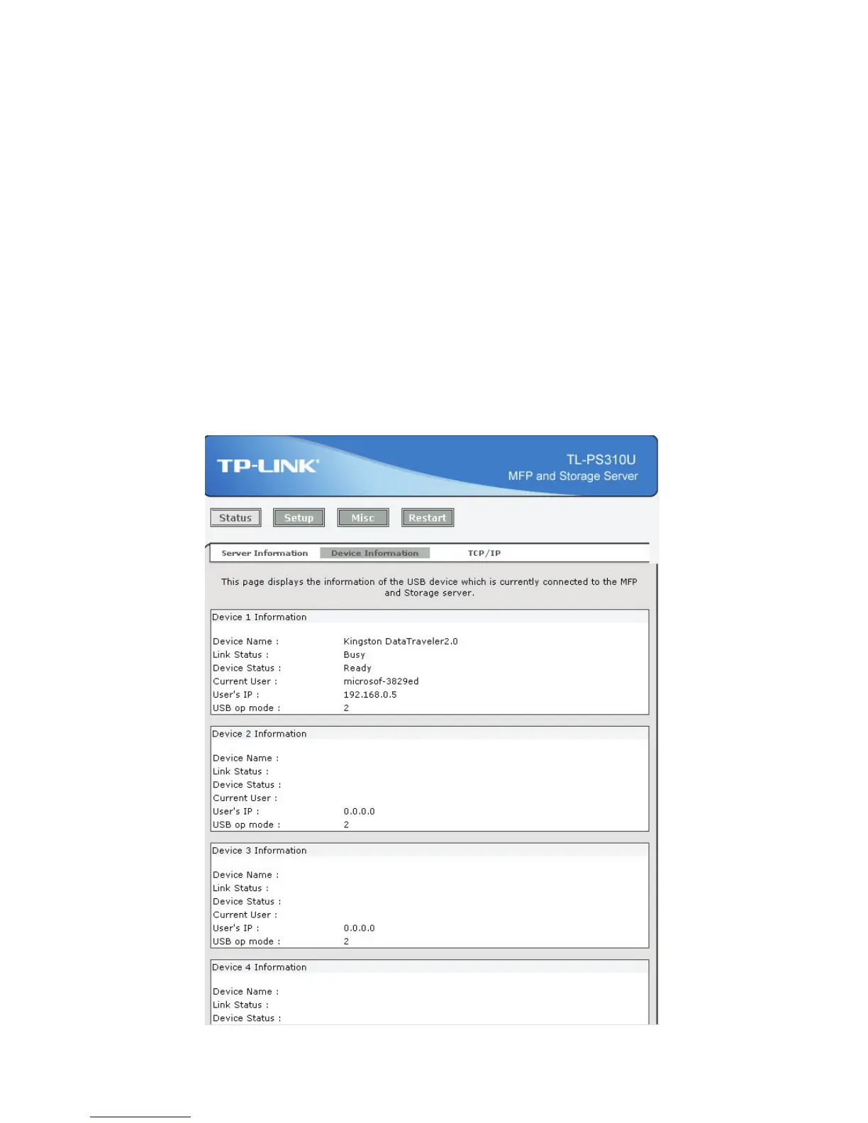 When the USB device is used by user, Link Status will be “Busy”. If it is free of use, it shows”Online”.