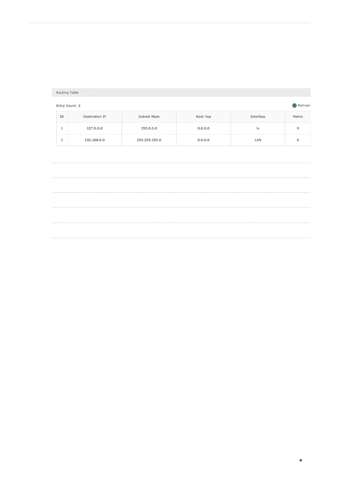 Choose the menu Transmission> Routing > Routing Table to load the following page.